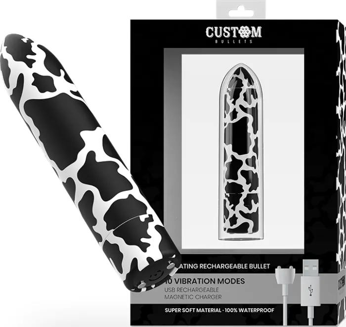 Bala vibrátor Custom Bullets Cow je diskrétny a silný spoločník, ideálny na cesty. S 10 režimami vibrácie ponúka širokú škálu potešenia.
