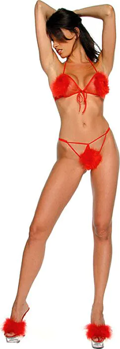 Pôsobivý a ornamentálny set podprsenky a tang s jemnými pom poms, vyrobenými z pravej peria. Tento krásny kus lingerie odhalí pokožku a hraje si s náznakmi, pričom sa sústreďuje na vizuálny dojem a cítieť sa atraktívne. S jeho atraktívnym dizajnom je ideálny pre špeciálne príležitosti.