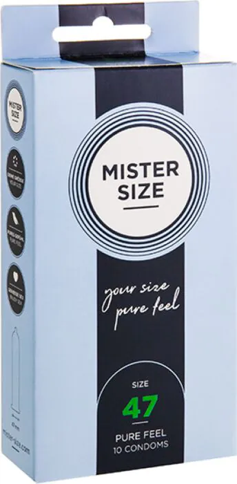 Bezpečnostné a pohodlné uchytenie s hrúbkou iba 0,05 mm pre naozaj blízke pocity. MISTER SIZE 47 mm je vyrobený z prírodného latexu, priehľadný a hladký, ideálny pre tých, ktorí preferujú úzke kondómy s intenzívnym zážitkom.
