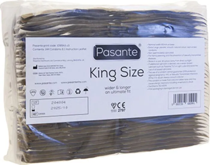 Kondóm Pasante King Size s šírkou 60 mm je navrhnutý pre mužov, ktorí potrebujú viac priestoru. Poskytuje pohodlné nosenie a bezpečnosť pri sexe.