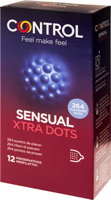 Intenzívna stimulácia počas penetrácie s 264 bodmi a strategicky umiestnenými ryhami na kondóme. S dĺžkou 190 mm a priemerom 54 mm sú kondómy CONTROL XTRA DOTS navrhnuté tak, aby dokonale sedeli väčšine mužov, pričom zabezpečujú vynikajúce pohodlie bez pocitu stiahnutia.