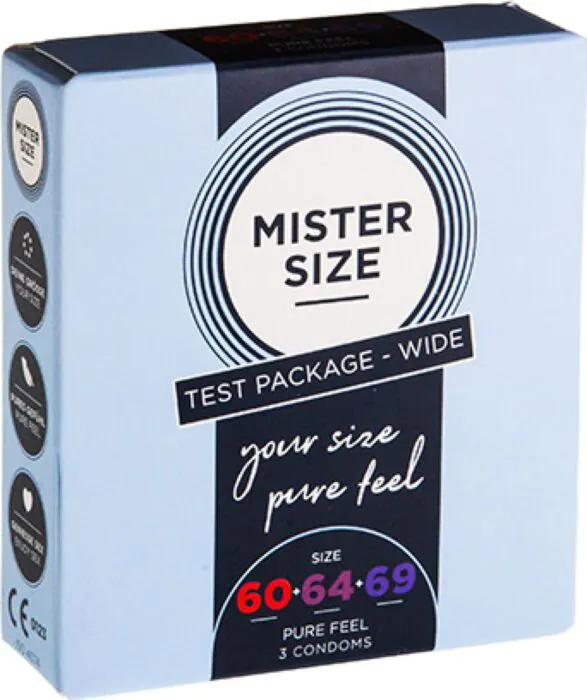 Pohodlné prispôsobenie a prirodzený pocit s kondómami Mister Size, ktoré ponúkajú rôzne veľkosti pre individuálnu potrebu. Vyrobené z prírodného latexu, s hrúbkou iba 0,06 mm, zabezpečujú vysoký stupeň citlivosti počas používania.