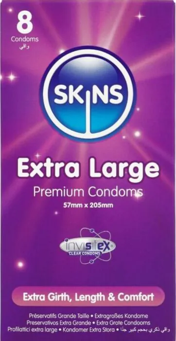 Bezpečné a pohodlné nosenie s kondómami Skins XL. S priemerom 57 mm a dĺžkou 205 mm ponúkajú extra pohodlie a sú vyrobené z najkvalitnejšieho prírodného latexu, čo prispieva k pocitu druhej pokožky. Tieto ultra tenké a extra lubrikované kondómy sú navrhnuté pre maximálnu ochranu a príjemný zážitok.