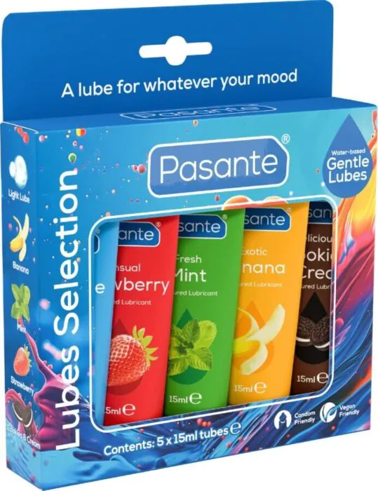 Set piatich mini lubrikantov PASANTE ponúka rôznorodosť príchutí v praktických tubách. Ideálny pre tých, ktorí hľadajú jednoduché a príjemné riešenie na cesty.