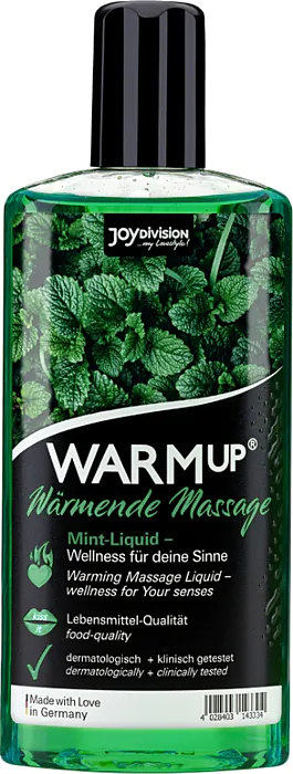 Teplé dotyky, ktoré vzbudzujú zmysly. Gél JOYDIVISION WARMUP ponúka 150 ml lákavý zážitok s mätovou vôňou, čím prevádza masáže na intenzívny zmyslový zážitok. Je ideálny na objavovanie tela partnera a posilnenie intímneho spojenia.