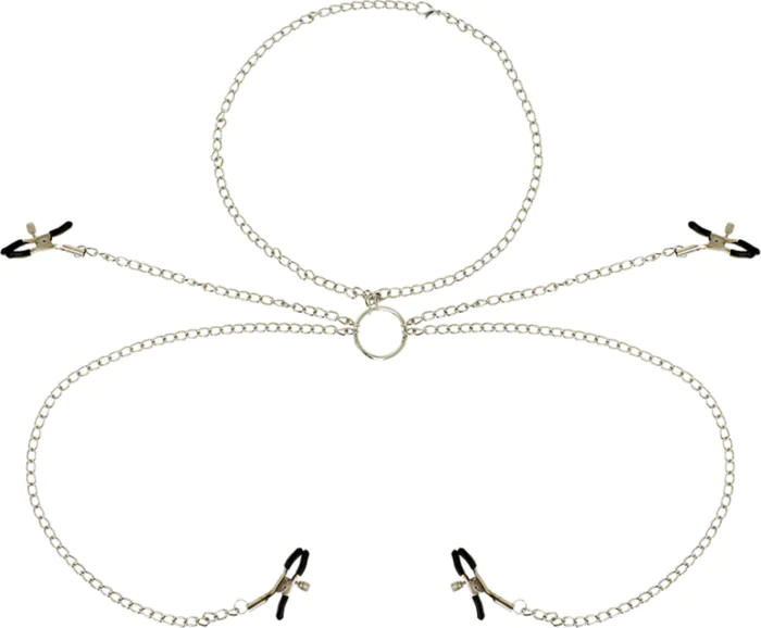 Intenzívna stimulácia bradaviek s reťazou na prispôsobenie tlaku. Vhodné pre tých, ktorí sa chcú pustiť do BDSM s kvalitnými materiálmi.