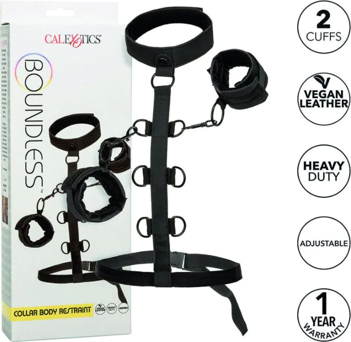 Intenzívny zážitok z bondage s postrojom CALEXOTICS Boundless. Vyrobený z vegánskej kože, ponúka pohodlie a luxus s reversibilným dizajnom, ktorý obohatí váš herný zážitok. Vymeniteľné pracky umožňujú nezávislé experimentovanie, čo dodáva na rozmanitosti.