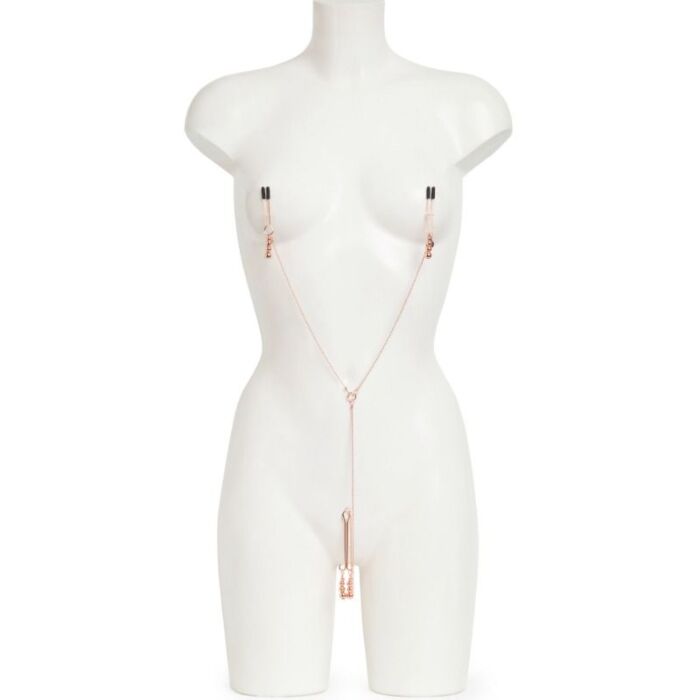 Zvýšte svoje zmyslové prežitie s reťazami na bradavky a klitoris. Ideálne pre tých, ktorí sa chcú vyskúšať v jemnom BDSM a hľadajú variabilitu.
