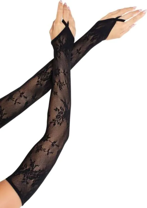 Rukavice Leg Avenue Extralong s kvetinovou sieťou