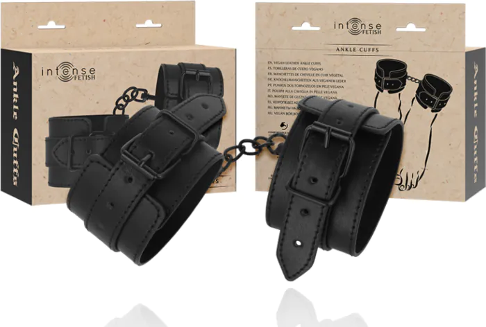 Pohodlné a bezpečné obmedzenie s tobillerami INTENSE FETISH z vegánskej kože. Ich ergonomický dizajn dokonale sedí na členkoch a dodáva vášmu erotickému hraniu štýlový nádych. Pre začiatočníkov v bondage sú tieto tobilleras ideálnou voľbou, ich materiál je etický a príjemný na dotyk.
